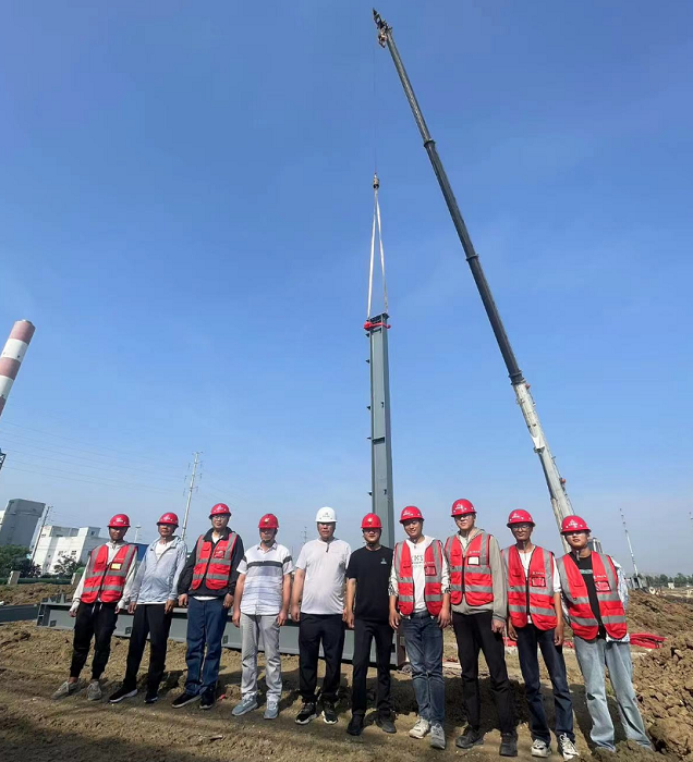丙類車間鋼架順利開吊是該工程一個(gè)重要里程碑節(jié)點(diǎn)。為確保進(jìn)展順利,吊裝前,項(xiàng)目部組織專業(yè)人員對(duì)吊裝方案、安全措施、質(zhì)量標(biāo)準(zhǔn)、起吊機(jī)械等進(jìn)行詳細(xì)審查,開展現(xiàn)場(chǎng)土建交付安裝前的條件確認(rèn),項(xiàng)目經(jīng)理現(xiàn)場(chǎng)指揮,安全管理人員全程監(jiān)控,保證鋼結(jié)構(gòu)吊裝能夠高標(biāo)準(zhǔn)開吊,為后續(xù)安裝工作奠定堅(jiān)實(shí)基礎(chǔ)。