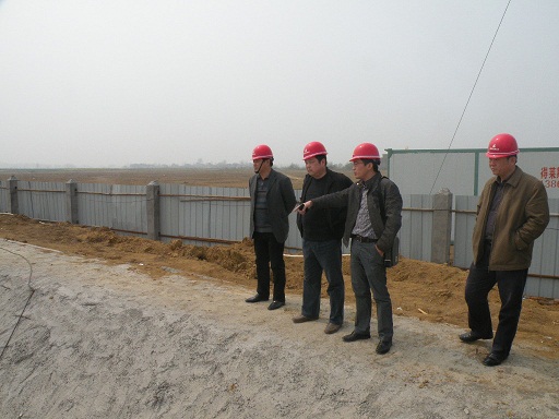 2011年4月8日上午,總經(jīng)理王軍邦,黨委書記戴樹明一行在第壹分公司經(jīng)理舒冰冰等陪同下,蒞臨合肥新橋國際機場項目工地一線調(diào)研和檢查指導(dǎo)工作。