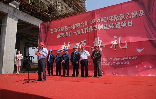 2011年4月28日,安徽省工業(yè)設(shè)備安裝公司滁州分公司承建的安徽華塑項(xiàng)目工程施工現(xiàn)場,到處場洋溢著一片祥和、喜慶的氣氛。上午10:18分,迎來了安徽華塑真空制鹽鹽硝車間土建主體結(jié)構(gòu)封頂儀式。公司總經(jīng)理王軍幫、副總經(jīng)理劉安俊,華塑公司黨委書記黃家發(fā)、 副總經(jīng)理梁東風(fēng),北京中輕國際工程管理有限公司現(xiàn)場總監(jiān)郭均川等領(lǐng)導(dǎo)應(yīng)邀出席了封頂儀式。本工程從開工到土建主體結(jié)構(gòu)封頂,在質(zhì)量、安全、進(jìn)度等方面受到了業(yè)主和監(jiān)理單位的一致好評,并獲得華塑園區(qū)二十多家施工單位綜合評比第二名得好成績。真空制鹽主體結(jié)構(gòu)施工進(jìn)度上創(chuàng)造了全國最短時(shí)間,為公司在今后進(jìn)一步占領(lǐng)鹽化工程市場打下了堅(jiān)實(shí)的基礎(chǔ)。