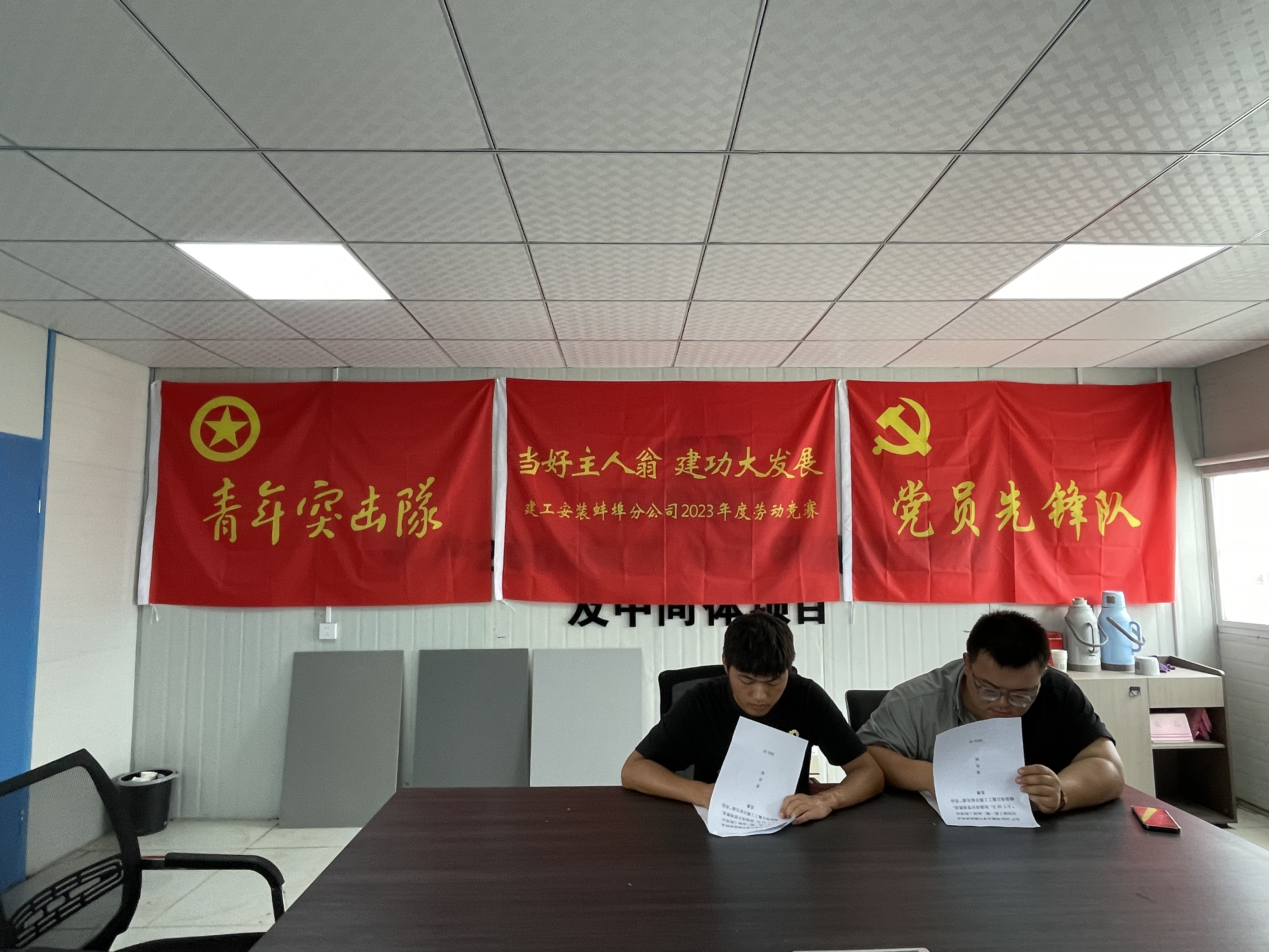 會(huì)上,參賽人員開(kāi)展了勞動(dòng)競(jìng)賽大討論,項(xiàng)目代表及班組代表共同簽署“勞動(dòng)競(jìng)賽責(zé)任狀”,施工班組代表作表態(tài)發(fā)言。