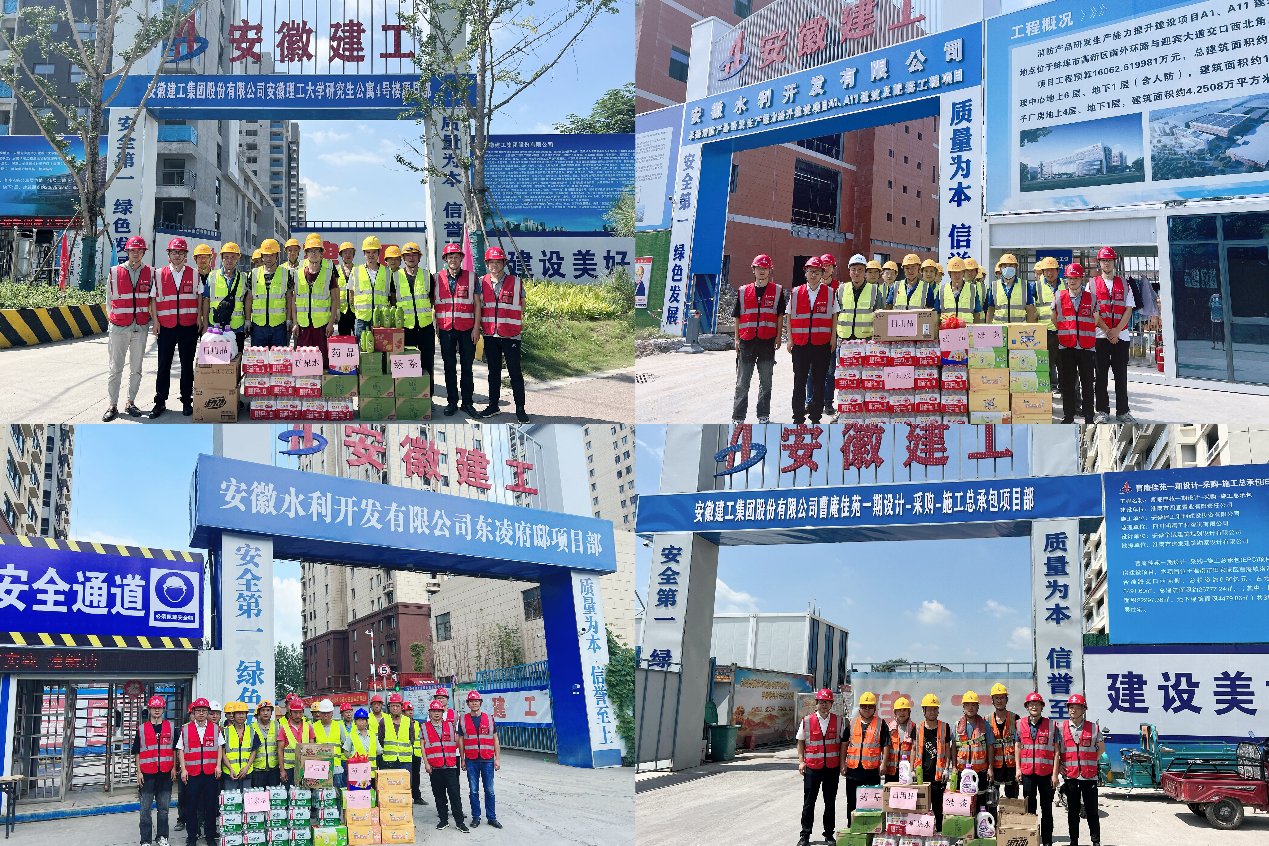 分公司領導先后深入到蚌埠依愛產業(yè)園項目、五河東凌府邸項目、安徽理工大學研究生公寓樓項目、曹庵佳苑一期項目等電梯安裝工程實地走訪,每到一個項目,詳細了解項目現場生產安全工作開展情況,與員工談心談話,了解一線工作人員所思所想所盼,同時為大家送上礦泉水、飲料、藥品、洗護用品等防暑降溫物資,對他們不畏炎熱、辛勤工作、無私奉獻的敬業(yè)精神表達了誠摯的敬意。同時,要求各項目部要嚴格落實好防暑降溫措施,合理調整作息時間,確保一線工作人員身體健康和施工安全。