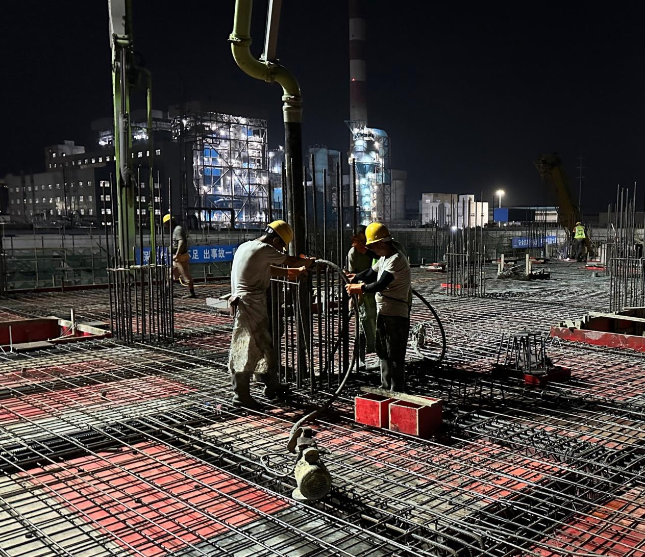 地上一層澆筑前,項(xiàng)目部做了精心施工準(zhǔn)備,領(lǐng)導(dǎo)班子每晚組織召開(kāi)工程進(jìn)度協(xié)調(diào)會(huì),對(duì)分包單位提出的問(wèn)題,當(dāng)即答疑,分解次日勞動(dòng)競(jìng)賽工作任務(wù)。同時(shí),項(xiàng)目部編制夜班值班制度,指導(dǎo)、督促、檢查夜班中出現(xiàn)的問(wèn)題,確保工程進(jìn)度有序推進(jìn)。任務(wù)分解下去,各施工班組馬上投入到準(zhǔn)備工作中,卯足了勁,一定要完成任務(wù)。搶工恰逢夏日高溫、梅雨季節(jié)反復(fù)期間,客觀條件受限,為施工生產(chǎn)帶來(lái)困難,項(xiàng)目部利用夜間搶抓施工任務(wù),在雨水到來(lái)前盡可能多的進(jìn)行施工,推進(jìn)生產(chǎn)進(jìn)度。