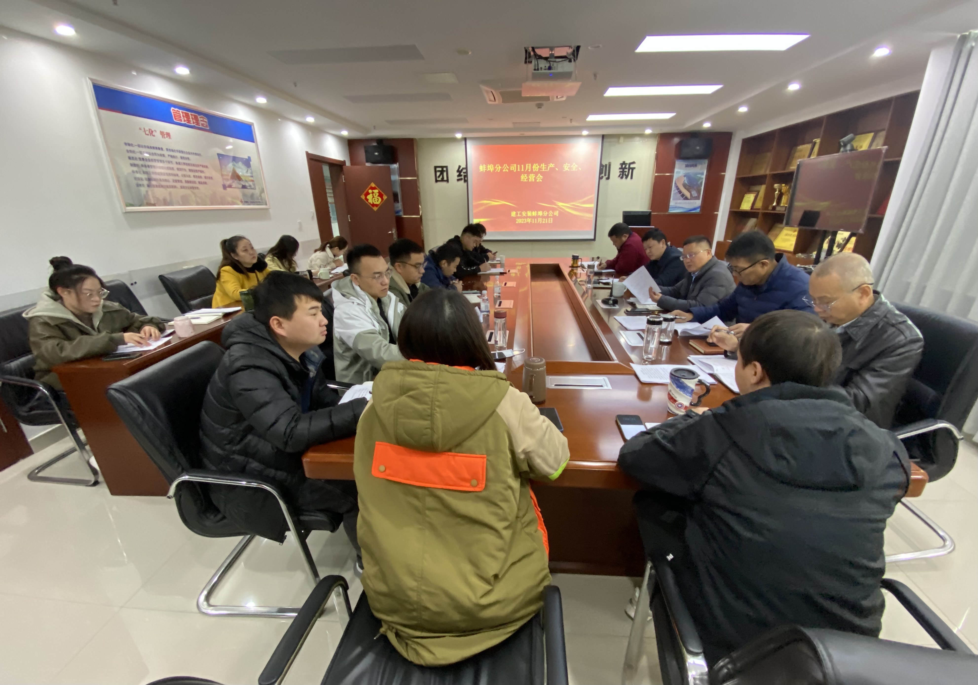 11月21日,蚌埠分公司組織召開11月份生產(chǎn)經(jīng)營會(huì),分公司領(lǐng)導(dǎo)班子成員、所屬各項(xiàng)目部、機(jī)關(guān)各部門負(fù)責(zé)人及工程管理部全體員工參加會(huì)議,會(huì)議由分公司副經(jīng)理郭洋主持。