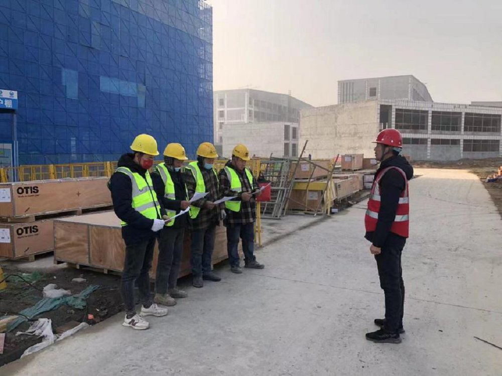 渦陽(yáng)職教園電梯安裝工程現(xiàn)場(chǎng),項(xiàng)目部對(duì)施工班組人員開(kāi)展三級(jí)安全教育、技術(shù)交底,強(qiáng)化安全防范意識(shí),確保項(xiàng)目施工生產(chǎn)安全。