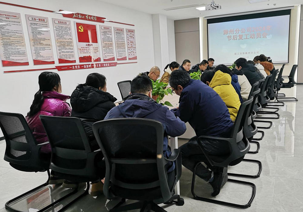 為認真貫徹落實集團、公司《關于加強節(jié)后復工復產(chǎn)安全生產(chǎn)工作的通知》相關要求,平穩(wěn)推進節(jié)后復工復產(chǎn)各項工作。2月26日下午,建工安裝滁州分公司召開2024年節(jié)后復工復產(chǎn)動員會,會議由分公司經(jīng)理、黨支部副書記黃彥濤主持,分公司領導班子成員、機關全體員工參加會議。