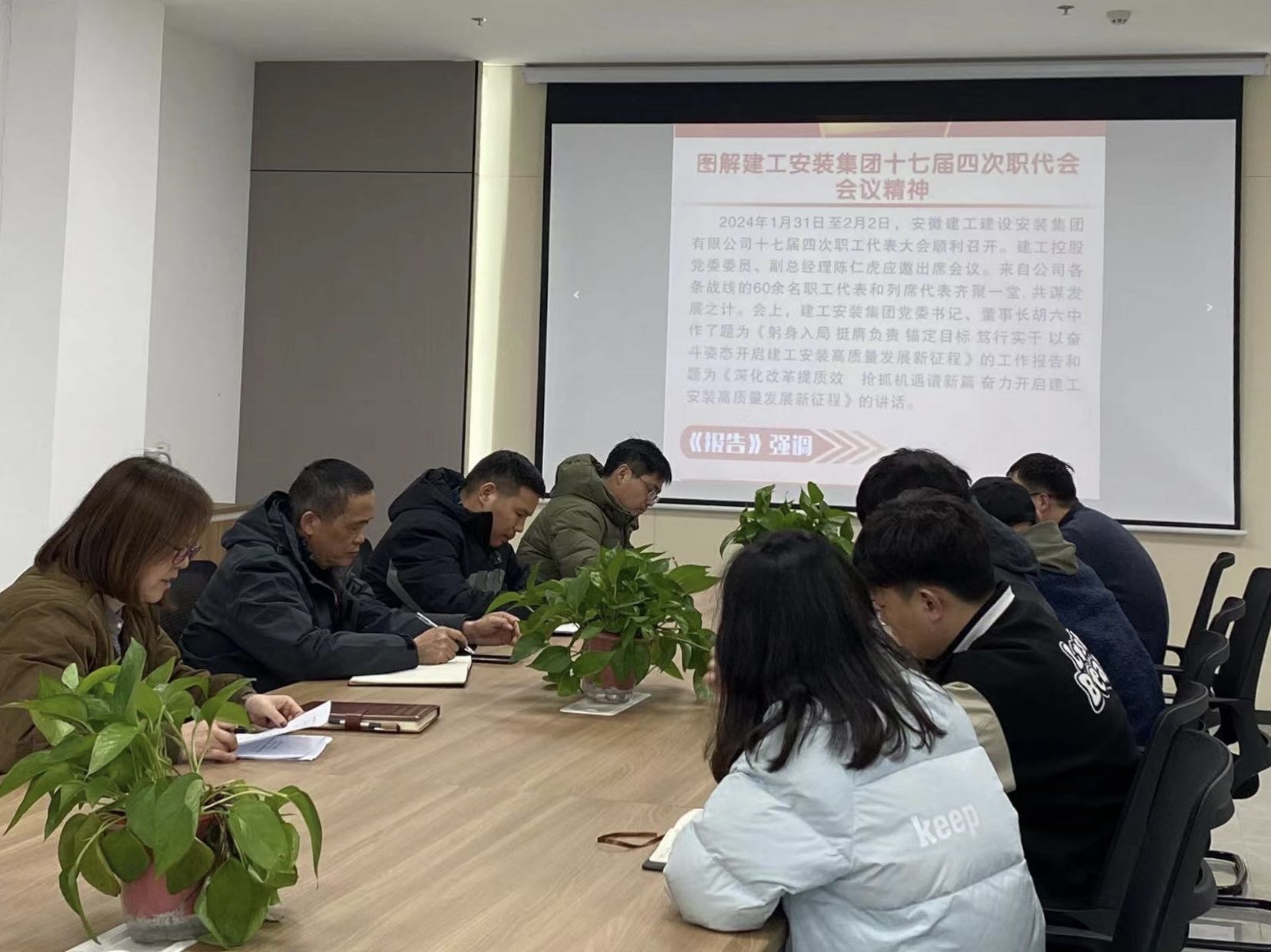 為貫徹建工控股三屆一次職代會暨2024年工作會議精神和建工安裝第十七屆四次職工代表大會精神,3月4日下午,建工安裝新能源分公司及時召開全體職工會議,認(rèn)真?zhèn)鬟_(dá)會議精神。分公司在滁全體員工參會,會議由分公司黨支部書記劉紅艷主持。