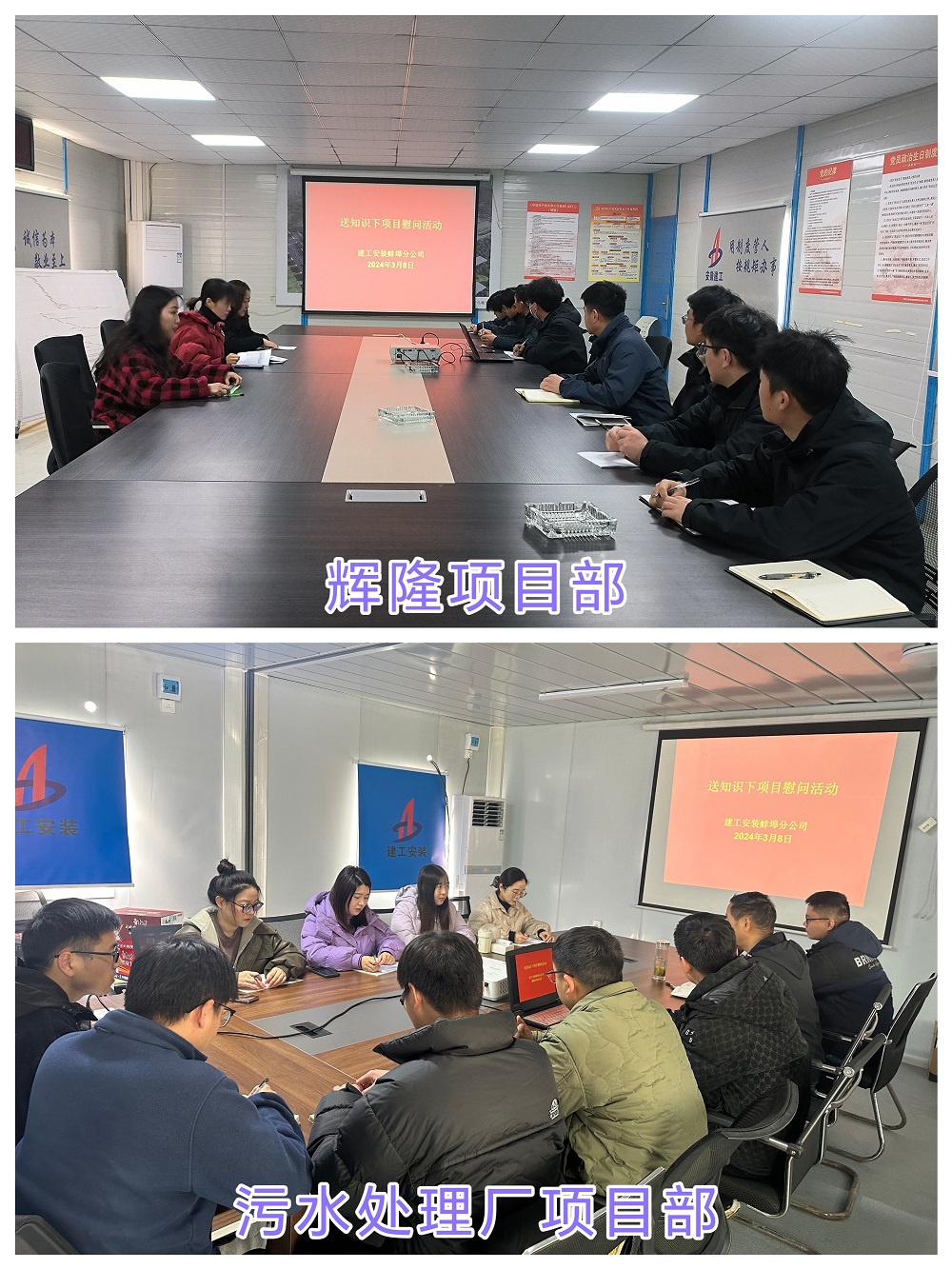 又是一年春暖花開時,迎來了第114個三八國際婦女節(jié),為慶祝節(jié)日,更好地展現(xiàn)安裝女職工的巾幗風(fēng)貌,3月8日,蚌埠分公司女職工分別赴輝隆項目部、污水處理廠項目部開展“送知識下項目”活動。