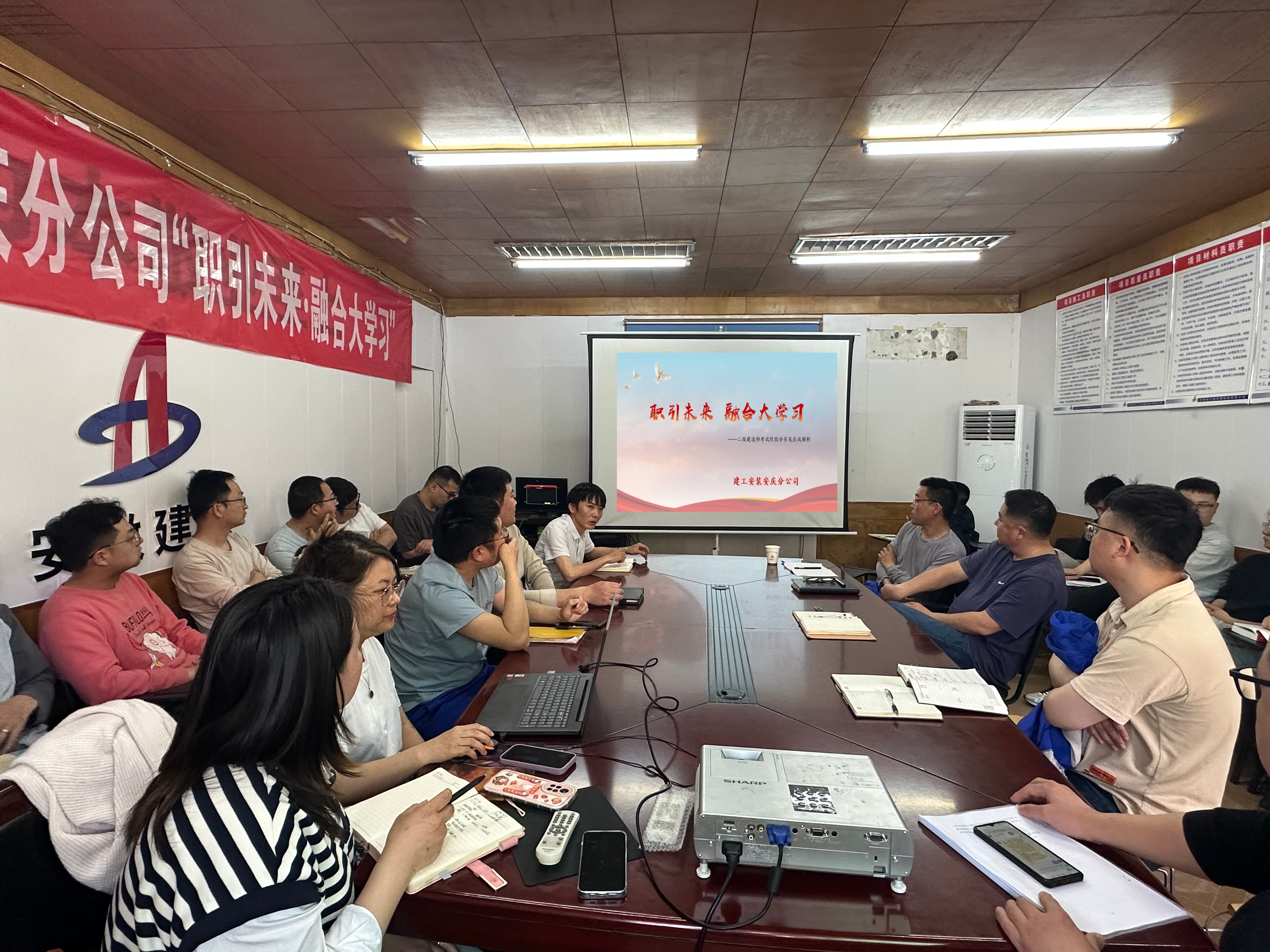 為了更好地增強(qiáng)分公司員工對(duì)二級(jí)建造師資格證相關(guān)問(wèn)題的了解,提高備考效率,激勵(lì)分公司員工的成長(zhǎng)與進(jìn)步,4月15日,安慶分公司開(kāi)展主題為“職引未來(lái) 融合大學(xué)習(xí)”的二建考試經(jīng)驗(yàn)交流學(xué)習(xí)課堂。
