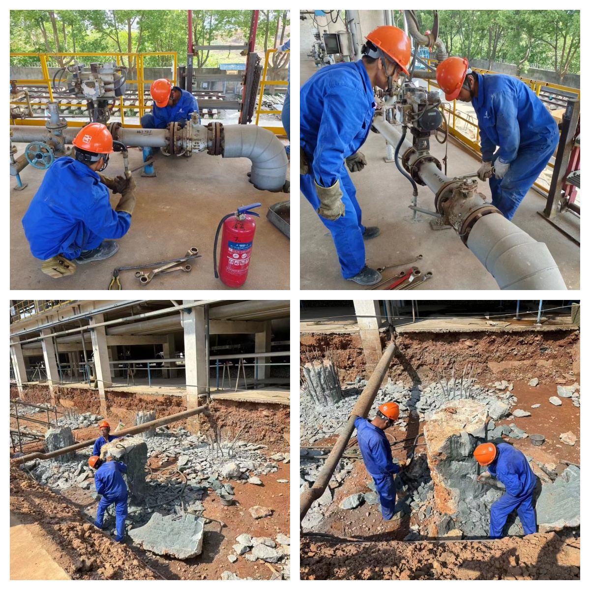 圖為現(xiàn)場管道拆除和挖孔樁施工