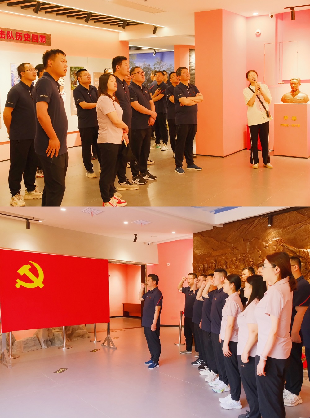 在紀(jì)念館內(nèi),通過(guò)參觀展區(qū)內(nèi)陳列的各類圖片、文獻(xiàn)以及實(shí)物等資料,大家追尋紅色足跡,深入了解革命先輩浴血奮戰(zhàn)的革命歷史和革命精神,深情追憶老一輩共產(chǎn)黨人的英勇事跡,深切緬懷流血犧牲的革命先烈。參觀學(xué)習(xí)結(jié)束后,全體黨員干部在紀(jì)念館前重溫了入黨誓詞。