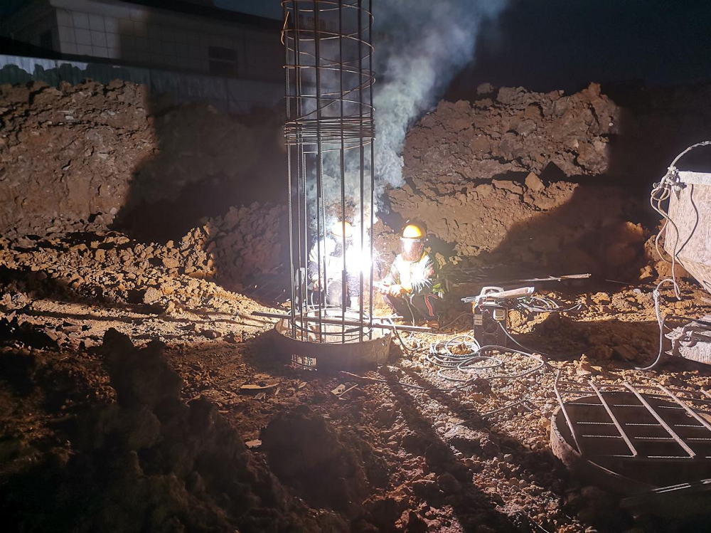 連日來,建工安裝六鋼大廈(酒店)工程施工總承包項(xiàng)目夜晚的工地現(xiàn)場仿佛在白晝下一般,吊車、沖擊鉆機(jī)等大型機(jī)械輪番作業(yè),運(yùn)輸車輛來回穿梭,隨處可見工人們忙碌的身影。