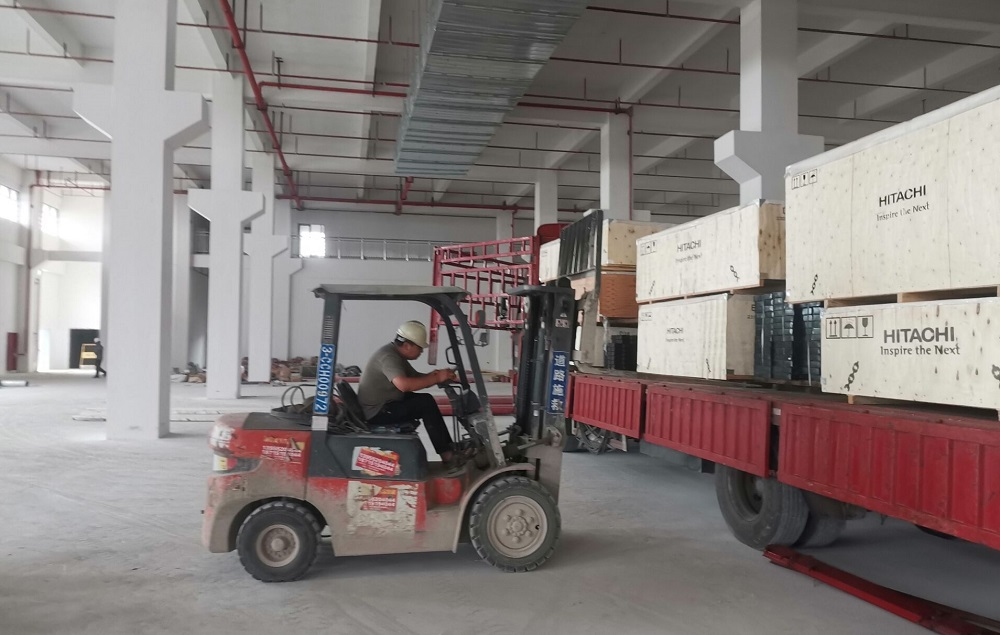 臨港科創(chuàng)園項目現場安裝人員正在進行電梯卸貨