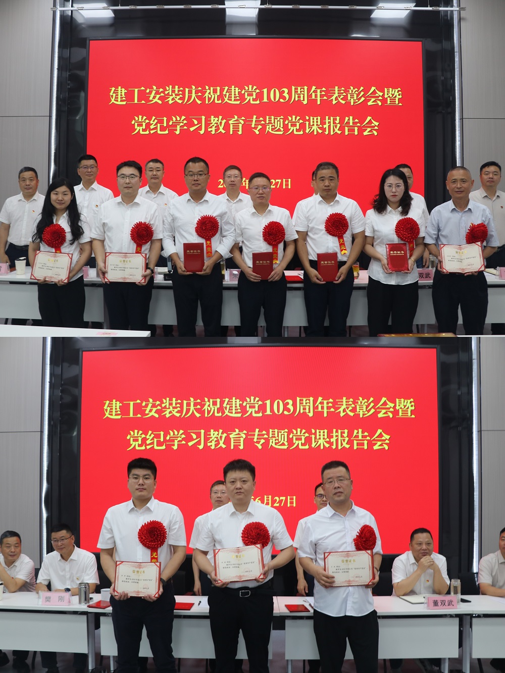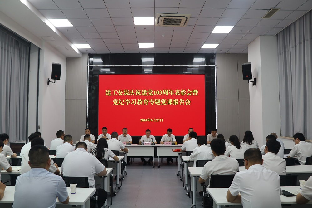 為慶祝中國共產(chǎn)黨成立103周年,扎實推進黨紀學習教育走深走實。6月27日上午,建工安裝黨委召開慶祝建黨103周年表彰會暨黨紀學習教育專題黨課報告會。公司領導班子成員出席會議,會議由公司黨委副書記、副總經(jīng)理周正平主持。