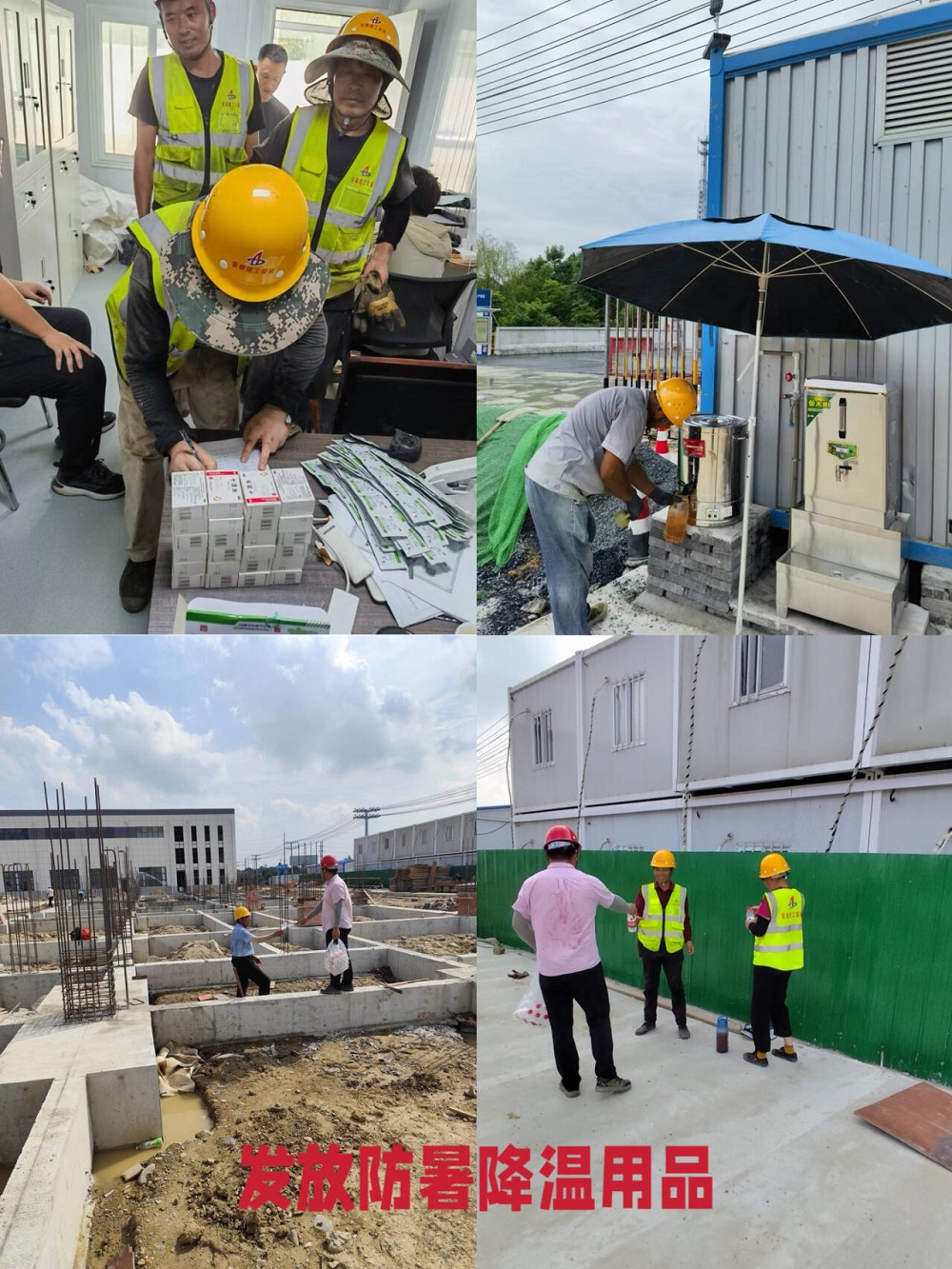 為應對高溫天氣,項目部多措并舉,每日供應冰水,加量供應防暑降溫物資并合理調整作息時間,從而保障施工人員在高溫天氣作業(yè)安全,在這炎炎烈日下給工人師傅們送去一絲清涼。