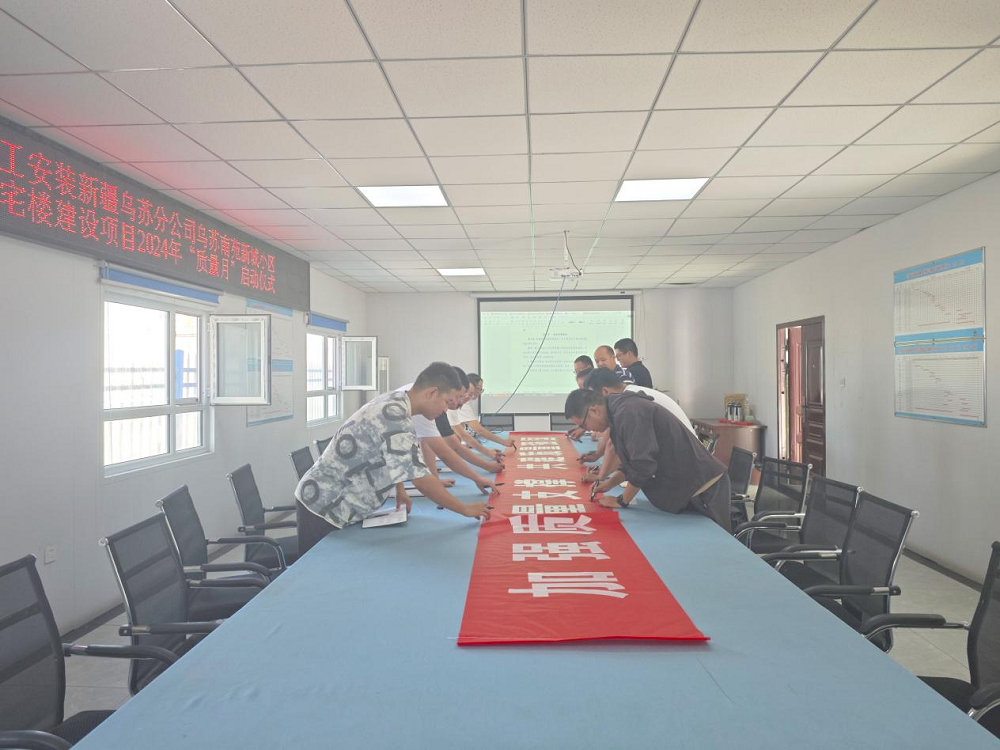為落實(shí)好2024年全國“質(zhì)量月”活動(dòng)要求,近日,建工安裝新疆烏蘇分公司及項(xiàng)目部舉行“質(zhì)量月”活動(dòng)啟動(dòng)動(dòng)員會(huì),強(qiáng)化全員、全方位、全過程質(zhì)量管理,營造濃厚質(zhì)量文化氛圍,全面拉開2024年“質(zhì)量月”活動(dòng)的序幕。
