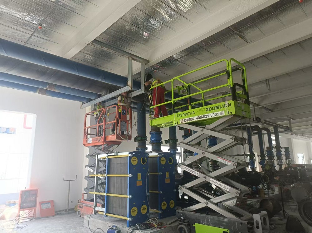 目前項(xiàng)目施工現(xiàn)場(chǎng)100多名工人各司其職,正在進(jìn)行PO1廠房1-3層的水電、動(dòng)力空調(diào)水、裝飾裝修、通風(fēng)、保潔、保溫等相關(guān)施工作業(yè)。與此同時(shí),頂樓冷水機(jī)房管道、屋面中溫冷水機(jī)組、冷卻塔、純水機(jī)房的安裝施工也在同步推進(jìn)。