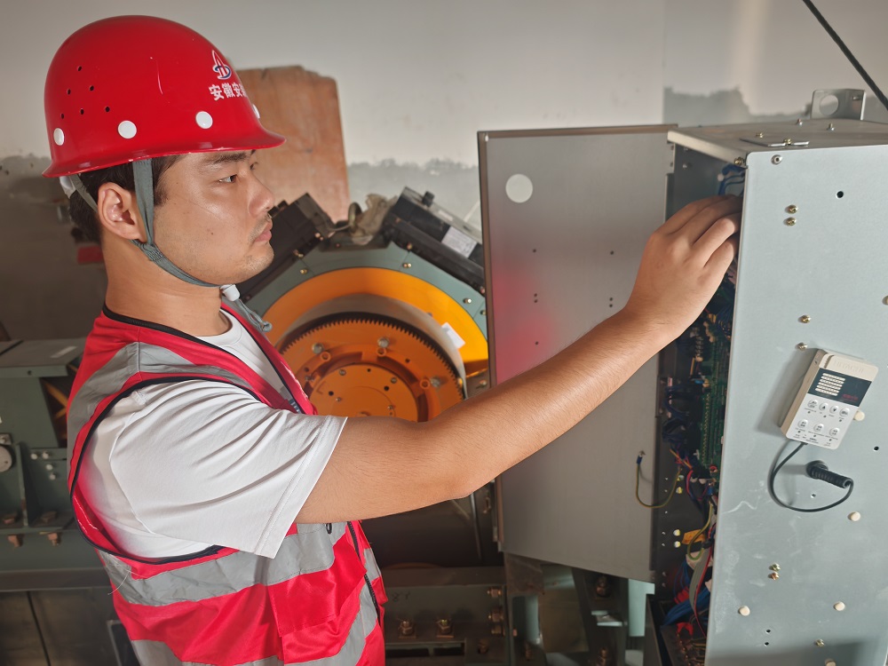 中國蚌埠傳感谷(寧波蚌埠微電子產(chǎn)業(yè)園)項(xiàng)目,技術(shù)員,鄭繼昊,正在檢查電梯控制柜操作系統(tǒng)。奮進(jìn)正當(dāng)時(shí),我為祖國建設(shè)出力,以實(shí)際行動(dòng)建設(shè)精品工程。我在項(xiàng)目堅(jiān)守,我為祖國慶生。