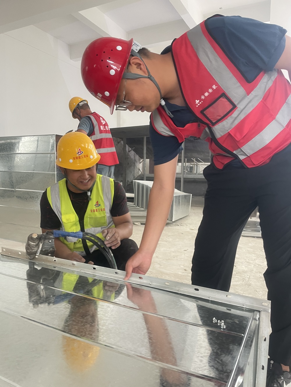 施工初期,編制責(zé)任成本階段,他組織專人專班研究擬定實(shí)施性施工組織設(shè)計(jì)。三個(gè)基地項(xiàng)目的防排煙風(fēng)管施工面臨著工藝復(fù)雜,施工成本較高,且成型觀感較差的問題。他通過現(xiàn)場(chǎng)與監(jiān)理、業(yè)主的溝通把防排煙風(fēng)管改成鋼面鎂質(zhì)復(fù)合風(fēng)管。此種風(fēng)管不僅符合新規(guī)中對(duì)于風(fēng)管耐火性、隔熱性及完整性的要求而且兼具了美觀、輕體及安裝便捷等優(yōu)勢(shì)。此變更預(yù)計(jì)可為項(xiàng)目節(jié)省30萬元。