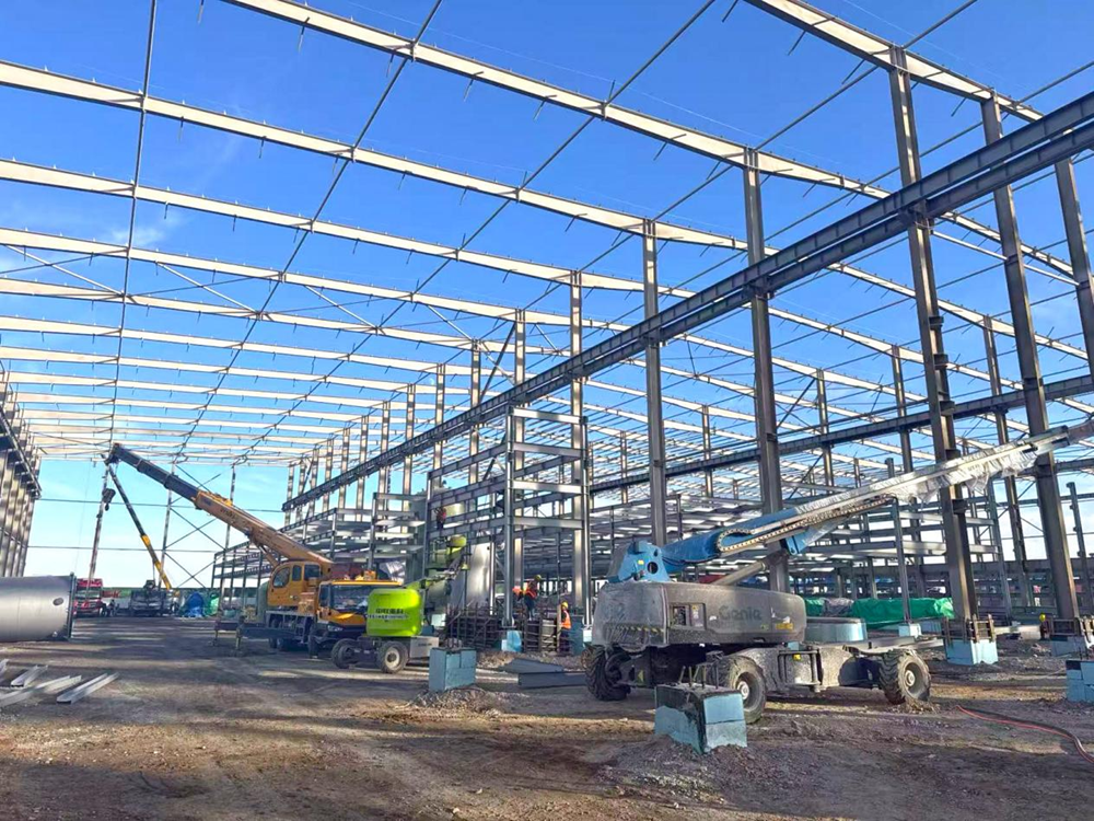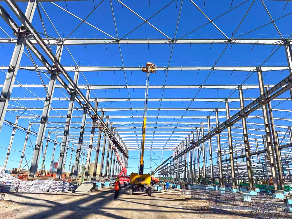 吊車的“長(zhǎng)臂”在空中伸展、曲臂車在鋼架間頻繁升降、工程車在場(chǎng)地上來(lái)回穿梭、工人們忙碌的身影隨處可見(jiàn),敲擊聲此起彼伏……針對(duì)當(dāng)前重點(diǎn)建設(shè)任務(wù),項(xiàng)目部精細(xì)部署,組織施工力量、細(xì)化節(jié)點(diǎn)安排、調(diào)配人機(jī)資源,鼓足干勁、狠抓安全、緊扣進(jìn)度、全員發(fā)力,克服高海拔的特殊施工環(huán)境和偏遠(yuǎn)地區(qū)的資源保障困難,項(xiàng)目部提出了“奮戰(zhàn)兩月 決勝年末”的戰(zhàn)斗口號(hào),以“拼”的姿態(tài),“搶”的速度,全力沖刺12月底確保完成廠房封閉目標(biāo)節(jié)點(diǎn)。