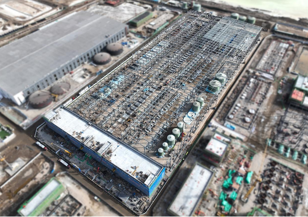 截至目前變電所主體結(jié)構(gòu)封頂,二次結(jié)構(gòu)完成一半;廠房鋼結(jié)構(gòu)主體基本完成,圍護(hù)系統(tǒng)進(jìn)場(chǎng)施工,設(shè)備基礎(chǔ)全部完成。