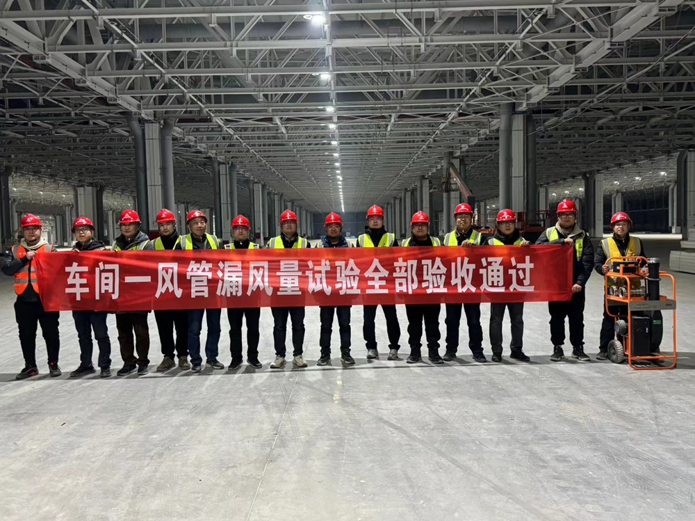 本周,車間一的風(fēng)管漏風(fēng)量試驗全部驗收合格,試驗達(dá)標(biāo)率達(dá)100%。目前,廠房車間一焊裝車間的水電風(fēng)系統(tǒng)試壓試驗與漏風(fēng)試驗全部結(jié)束。焊裝車間內(nèi)水管保溫工作以及風(fēng)管保溫工作正在同步開展,且已進(jìn)入收尾階段。QA樓一層水電風(fēng)施工已完成90%,即將移交給裝飾單位進(jìn)場施工。車間一屋頂閣樓空調(diào)水管已完成50%,電力橋架已完成60%,重力流雨水管已完成100%。與此同時,沖壓車間已完成頂部主風(fēng)管和虹吸管道的安裝工作,管道也在同步預(yù)制。