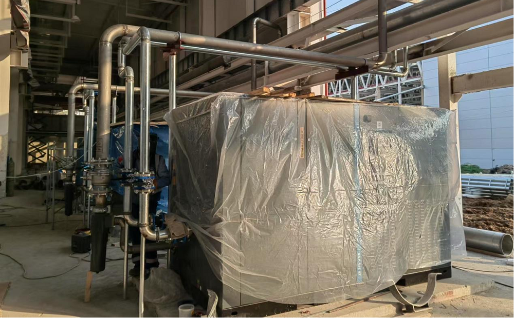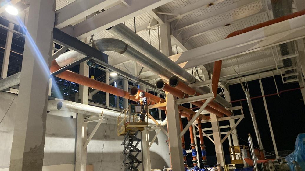 站房一(能源中心)作為整個廠區(qū)的“發(fā)動機”,建筑面積雖僅有11000平方米,但單體機電安裝造價約8000萬元,施工內(nèi)容涵蓋空壓站、污水處理站、高效制冷機房、消防泵房及給水加壓站房等全廠幾乎所有核心“部件”。面對施工工藝復雜、工期緊、標準高且施工過程中設計變更頻繁、設備供貨周期長、資金不到位等多種不利因素,項目部積極想辦法克服困難,采取主動對接各方資源,深化設計確認、督促設備批量排產(chǎn)、加快技術交底完成、倒排施工計劃等一系列有效措施,堅持“搶進度、抓質量、保安全”核心思想不動搖,加班加點推進項目建設。截至目前,站房一(能源中心)形象進度已完成55%以上,實現(xiàn)產(chǎn)能過半,為確保關鍵合同節(jié)點“2025年2月28日公用動力系統(tǒng)調試完成,并具備各生產(chǎn)條件”打下堅實基礎。