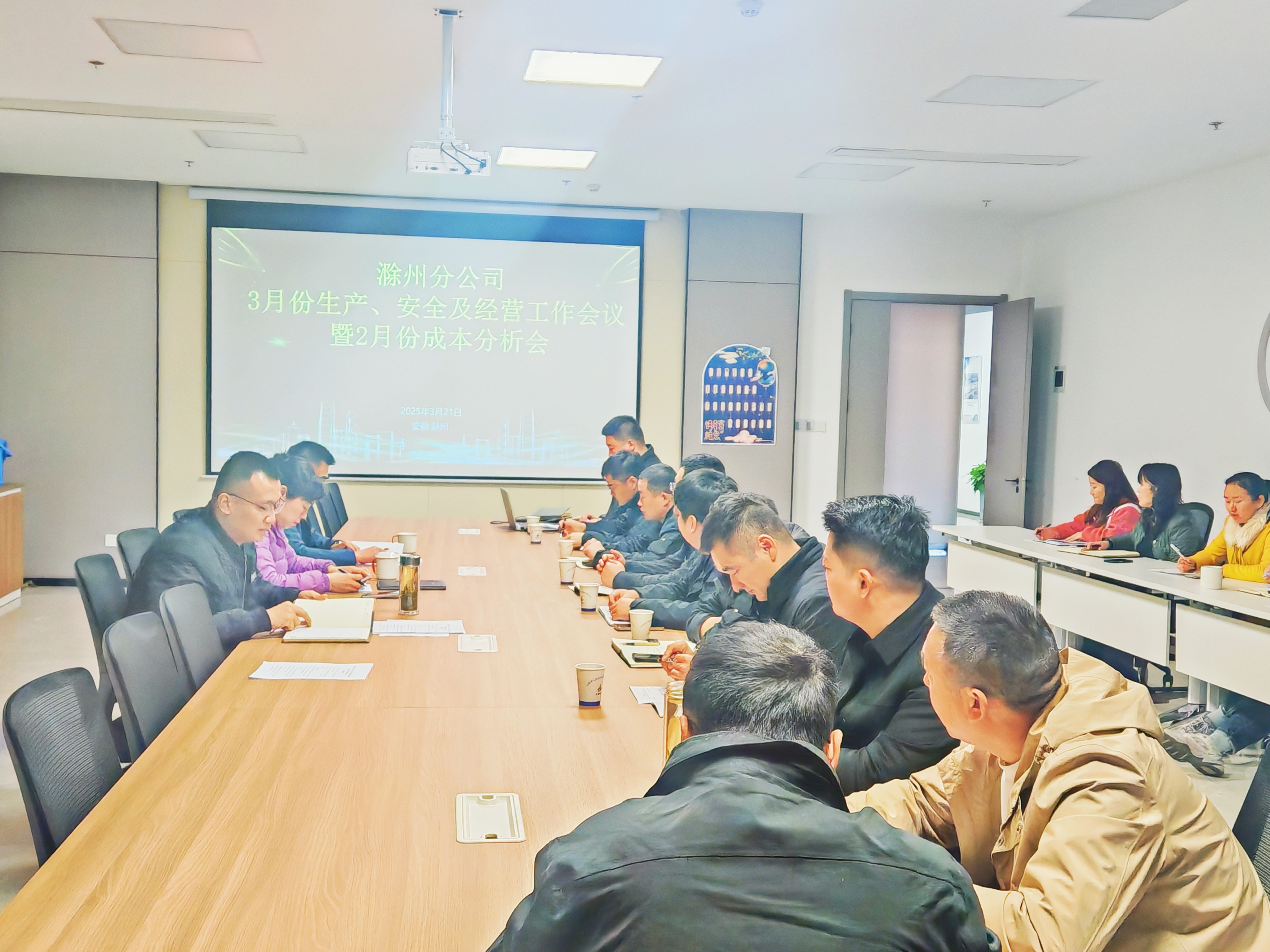 2025年3月21日上午,建工安裝滁州分公司組織召開3月份生產(chǎn)、安全及經(jīng)營工作會議暨2月份成本分析會。分公司領(lǐng)導(dǎo)班子成員、各項目經(jīng)理、機關(guān)各部門負(fù)責(zé)人等參加會議,會議由分公司副經(jīng)理張漢軍主持。