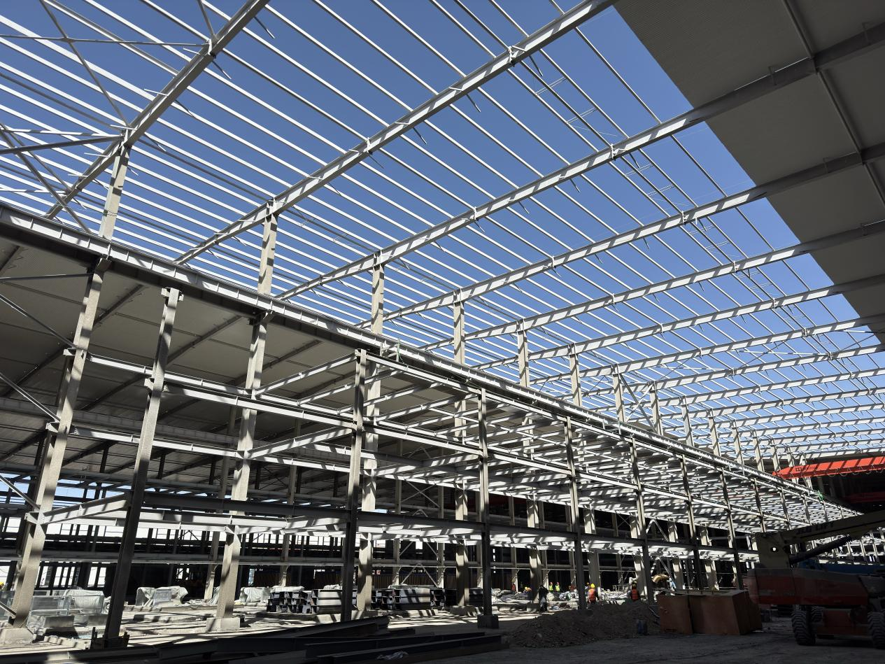 項(xiàng)目地處高海拔鹽湖區(qū),缺氧且淡水匱乏,施工環(huán)境惡劣,資源保障困難。面對不利因素,項(xiàng)目團(tuán)隊(duì)迎難而上,積極尋找解決方案,為項(xiàng)目順利推進(jìn)筑牢基礎(chǔ)。截至目前,項(xiàng)目已取得顯著階段性成果,廠房主鋼構(gòu)全部完成,管廊鋼結(jié)構(gòu)完成約95%,防火涂料完成80%,屋面及墻面圍護(hù)結(jié)構(gòu)完成約50%,配電房裝飾裝修工作有序進(jìn)行,各項(xiàng)任務(wù)按計劃穩(wěn)步推進(jìn)。