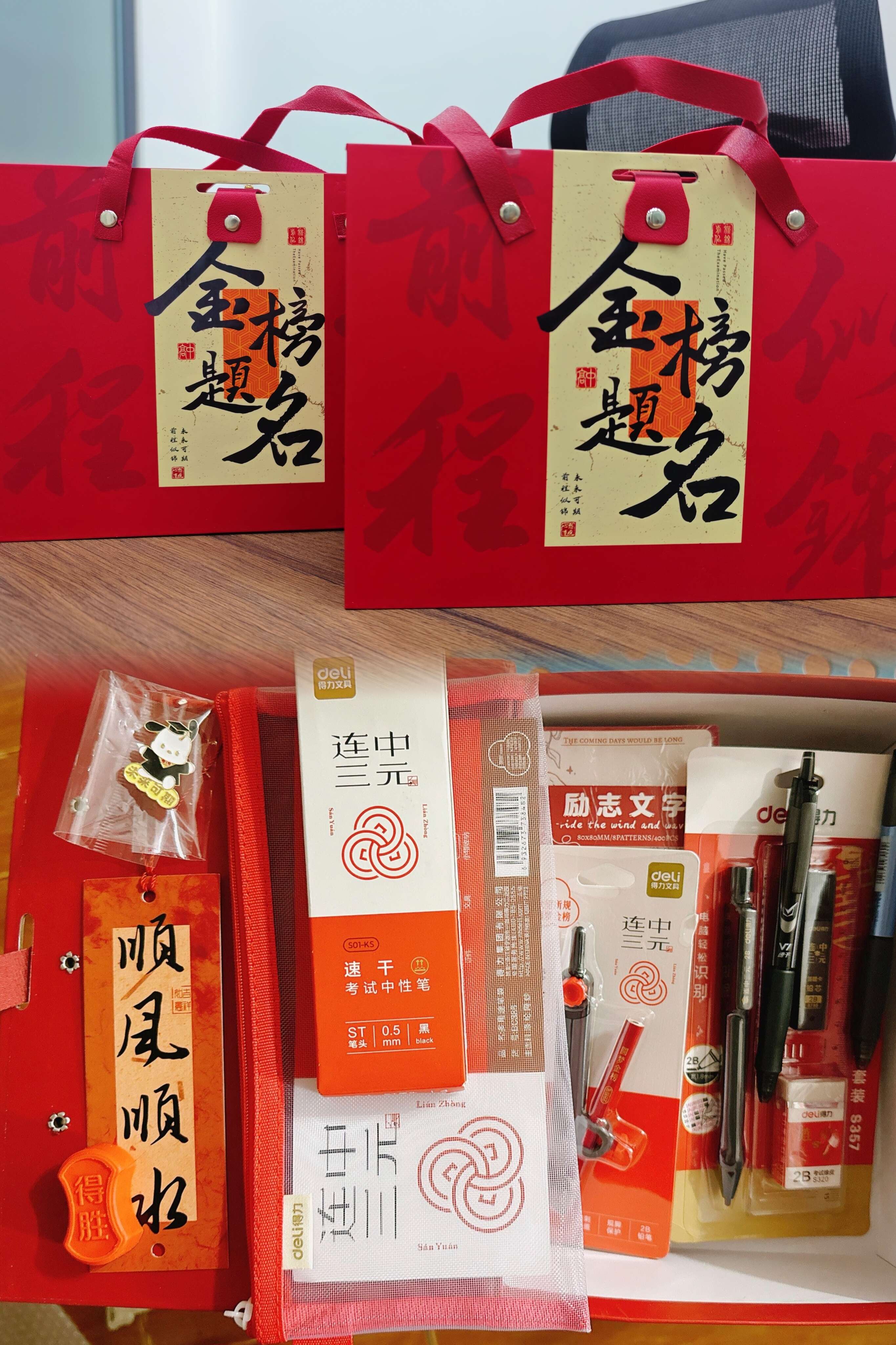 此次發(fā)放的大禮包內容豐富且極具意義。其中,文具套裝包含了高品質的簽字筆、涂卡筆、尺子等考試必備文具,助力學子們在考場上發(fā)揮出最佳水平;祝福語書簽上,書寫著“旗開得勝”“未來可期”等充滿鼓勵與期許的話語,寄托著公司對考生們的美好祝愿。