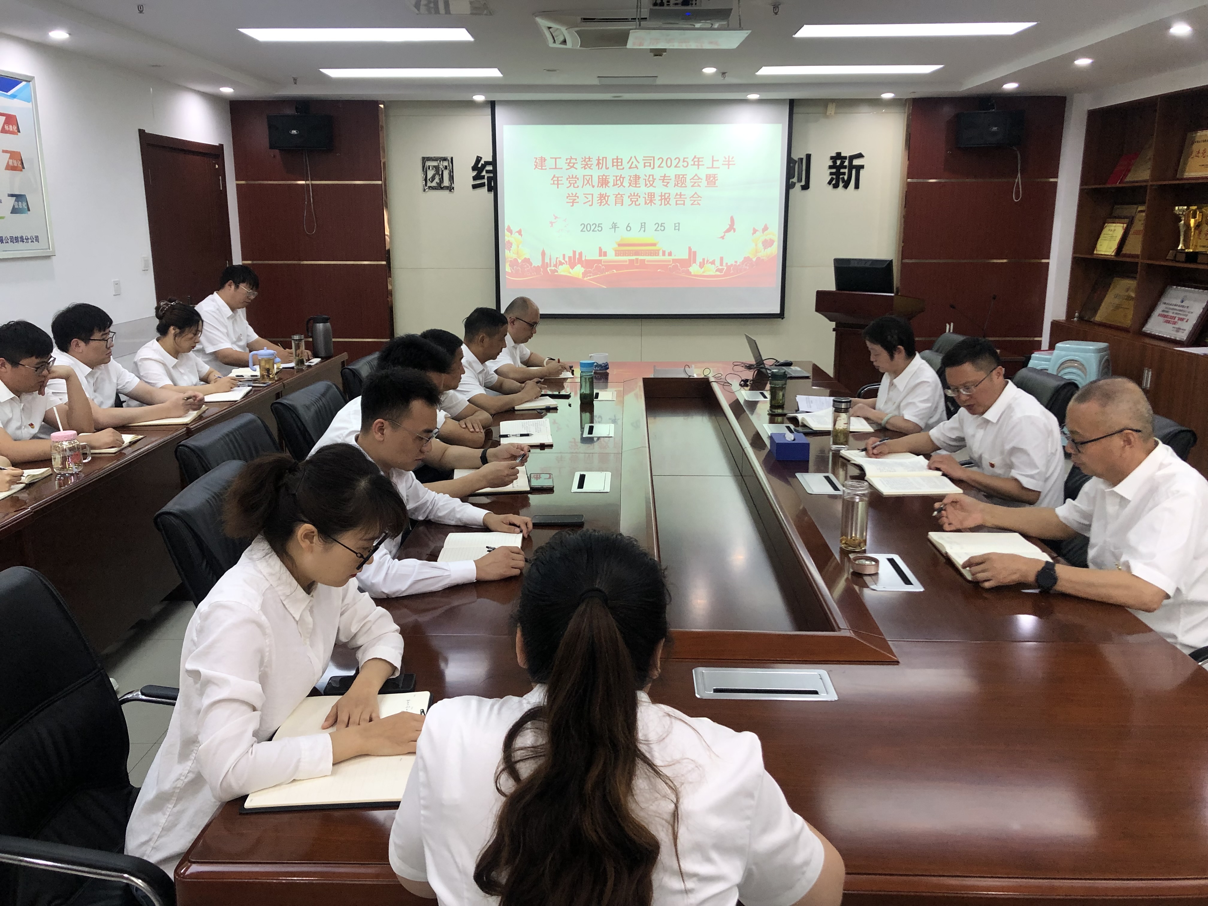 為慶祝中國共產(chǎn)黨成立104周年,扎實推進(jìn)深入貫徹中央八項規(guī)定精神學(xué)習(xí)教育走深走實,6月25日下午,建工安裝機(jī)電公司召開2025年度上半年黨風(fēng)廉政建設(shè)專題會暨學(xué)習(xí)教育黨課報告會。會議由黨支部副書記許素寒主持。