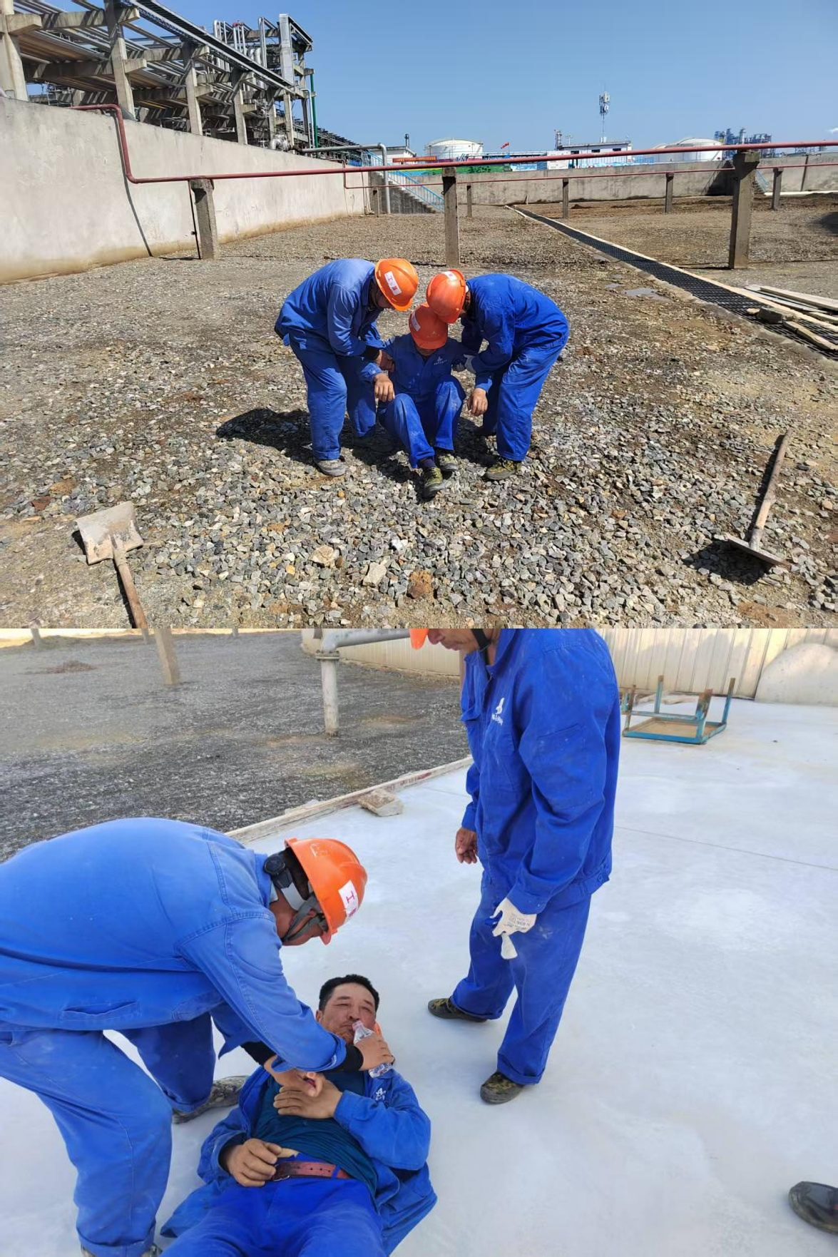 為進(jìn)一步提升應(yīng)急處置能力,安慶石化儲運部北山罐區(qū)地坪防滲項目現(xiàn)場開展了中暑應(yīng)急演練。演練模擬戶外作業(yè)人員突然暈倒的緊急場景,指揮參演人員分工協(xié)作,有序開展現(xiàn)場急救與送醫(yī)治療。整個演練過程僅用時30 分鐘,便高效完成。演練結(jié)束后,應(yīng)急演練領(lǐng)導(dǎo)小組立即組織總結(jié)會議,各小組匯報情況,安全負(fù)責(zé)人總結(jié)不足,為后續(xù)應(yīng)急工作積累了寶貴經(jīng)驗。