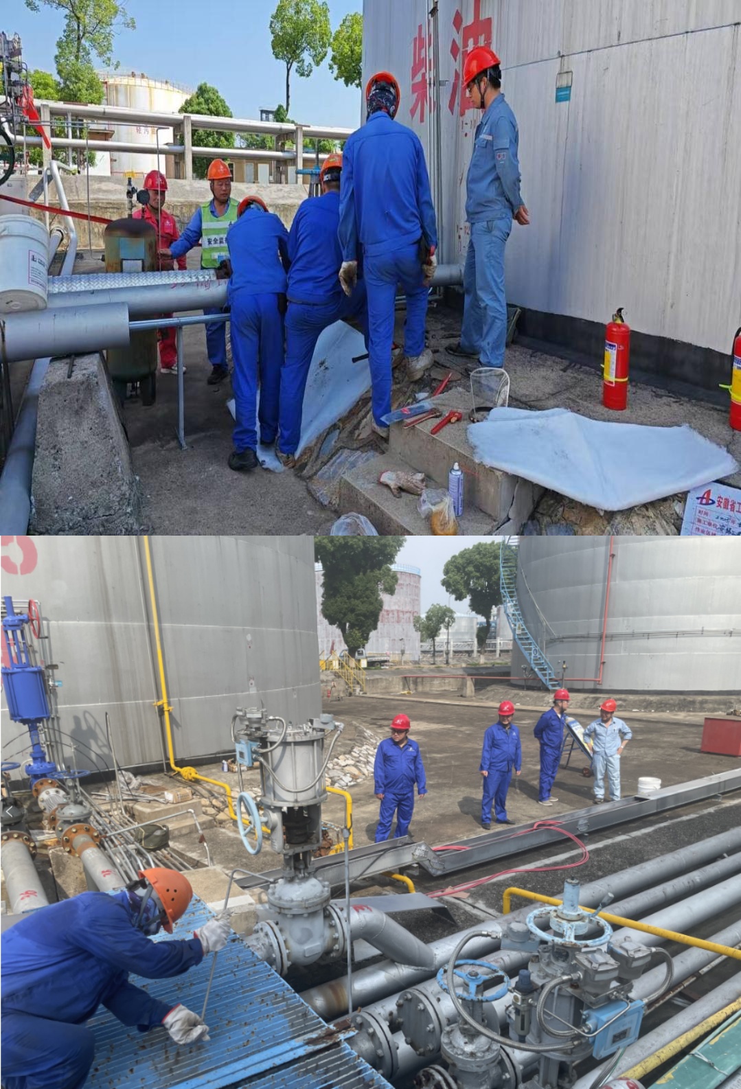 在培訓(xùn)演練的同時,隱患排查工作也在同步扎實推進(jìn)。市政公司聯(lián)合安慶石化儲運部、設(shè)備工程部及青島安工院,對框架協(xié)議項目進(jìn)行現(xiàn)場專業(yè)指導(dǎo)聯(lián)合檢查。針對檢查出的安全隱患,及時下發(fā)整改通知單,各班組迅速響應(yīng)、逐項整改并反饋,形成了隱患排查治理的閉環(huán)管理。隨后,市政公司黨支部充分發(fā)揮黨建引領(lǐng)作用,支委班子深入儲運部五、七等罐區(qū)進(jìn)出口管線增設(shè)緊急切斷閥門等項目一線,與儲運部作業(yè)區(qū)領(lǐng)導(dǎo)圍繞項目安全管理深入研討,并實地檢查施工進(jìn)度與安全防護(hù)措施落實情況,將黨建工作與安全生產(chǎn)深度融合,全力保障項目安全有序推進(jìn)。
